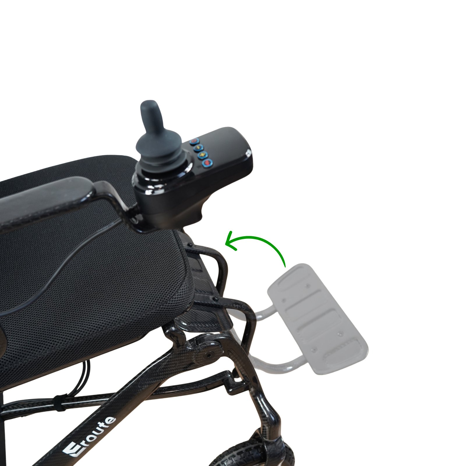 Les fauteuils roulants électriques d'Eroute sont dotés d'une fonction innovante de télécommande, qui permet à l'utilisateur et à d'autres personnes de les commander à distance. Par exemple, si un utilisateur se trouve dans une autre partie de la pièce et qu'il a besoin de rapprocher le fauteuil roulant, il peut utiliser la télécommande pour amener le fauteuil à son emplacement sans avoir besoin d'aide.