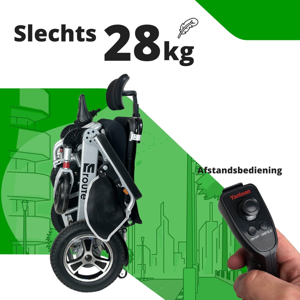 Met de elektrische rolstoel 8000FR XL kunt u volledig automatisch opvouwen met behulp van de afstandsbediening. Bij het model 8000FR XL kunt u ook de rugleuning handmatig verstellen. Dit model heeft een verbreed zitvlak van 52 cm en een groter draagvermogen tot 150 kg. Wees mobiel in elke situatie en geniet van een hoog comfort. Het model Eroute 8000 is uitermate geschikt voor reizen met de auto, bus, trein en vliegtuig. De elektrische opvouwbare rolstoel Eroute 8000 met krachtige motor, lithium batterij, een actieradius tot 30 km, een draagvermogen tot 150 kg en 2 jaar garantie zorgt dankzij de functionele voor- en achter schokdempers voor de meest comfortabele rit.